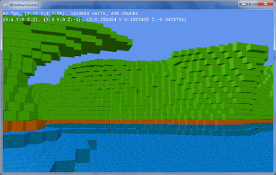 Anyway, whenever I added/removed a cube or chunk I had to update that huge dictionary. When you have 2 million cubes in the dictionary, you're going to be referencing it constantly. This is why adding/deleting from it was causing so many issues.